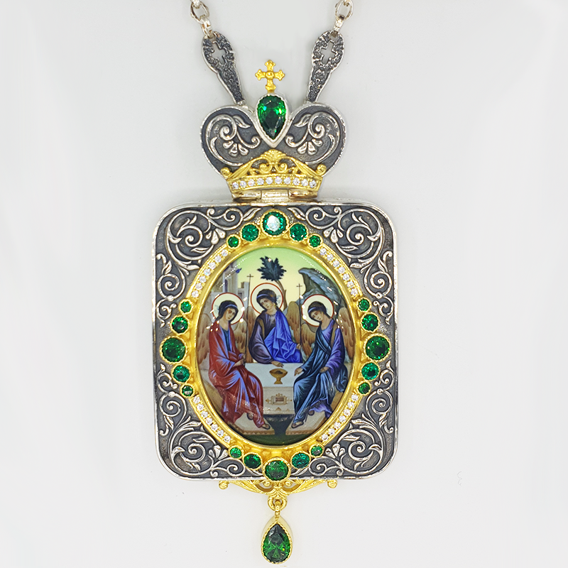 - Панагия латунная с фрагментарной позолотой, принтом и цепью арт.2.7.0280л