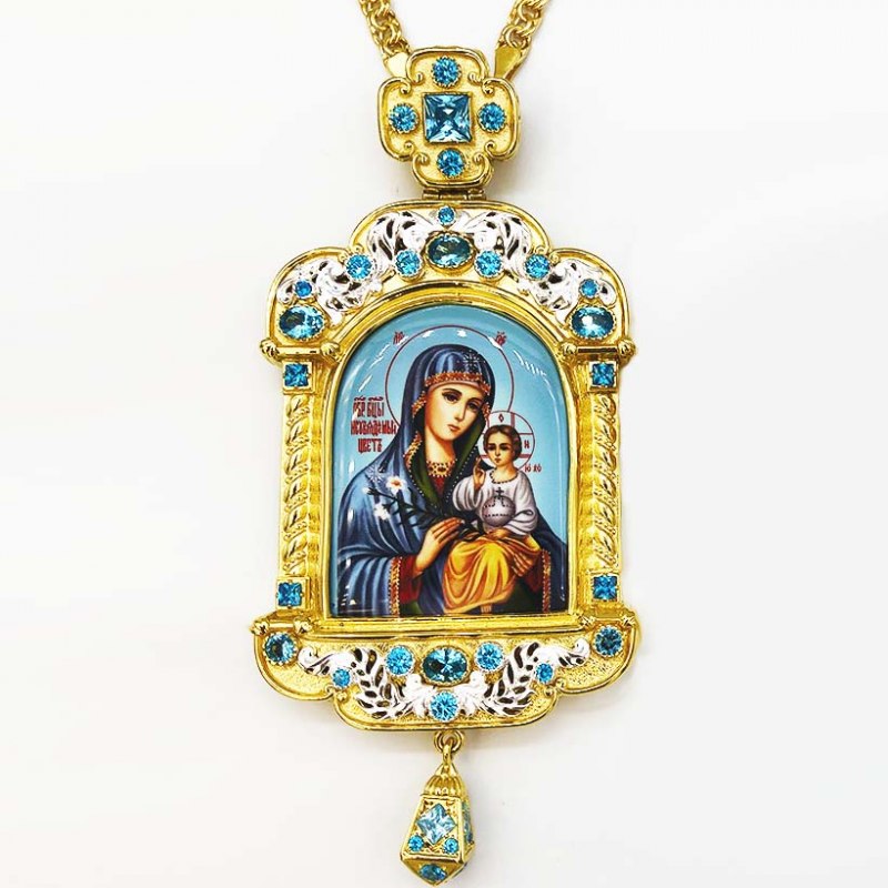 Панагия латунная в позолоте с принтом и цепью арт.2.7.0201лпв магазине Благолепие Богослужения