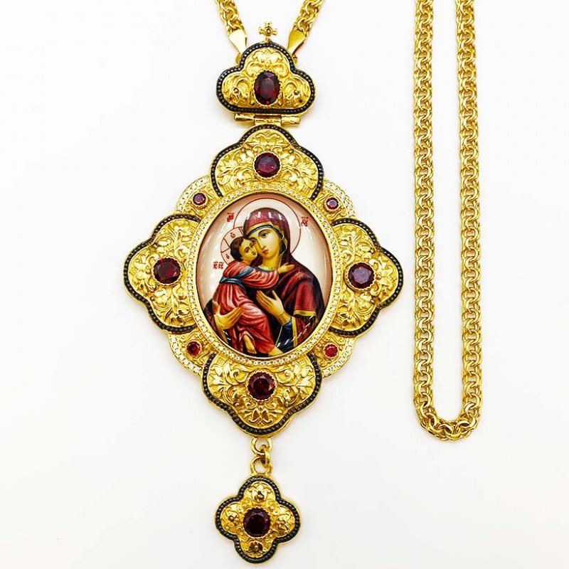 Панагия латунная в позолоте с принтом и цепью арт.2.7.0201лпв магазине Благолепие Богослужения