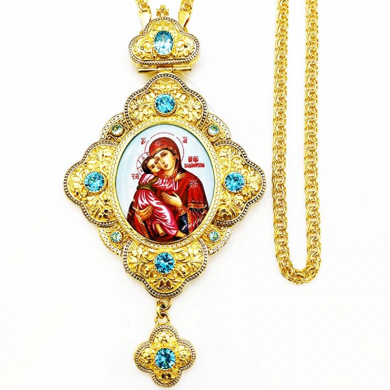 Панагия латунная в позолоте с принтом и цепью арт.2.7.0201лпв магазине Благолепие Богослужения