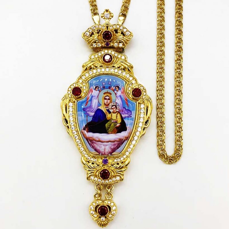 - Панагия латунная в позолоте с принтом и цепью арт.2.7.0201лп
