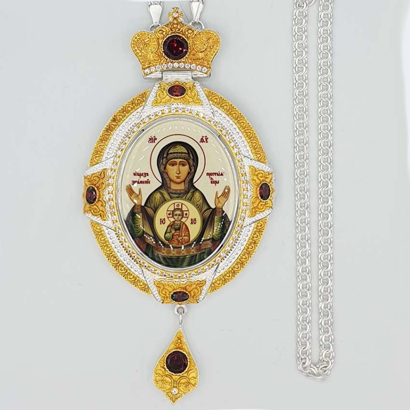 - Панагия латунная с фрагментарной позолотой, принтом и цепью арт.2.7.0201л