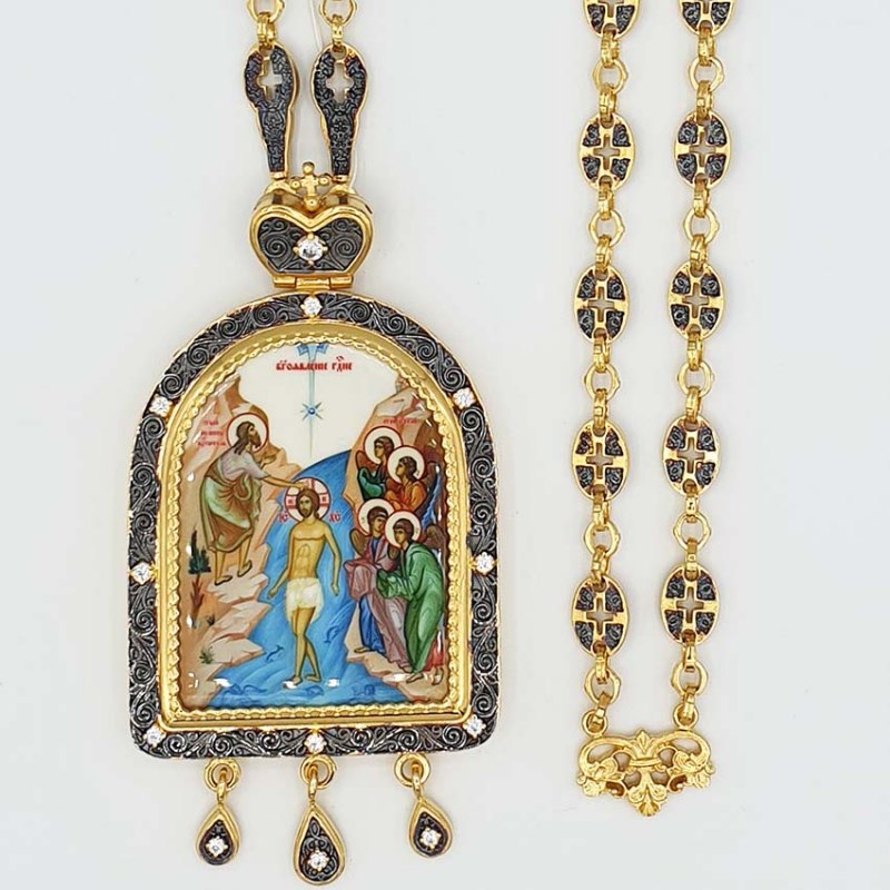 Панагия латунная в позолоте со вставками и цепьюв магазине Благолепие Богослужения