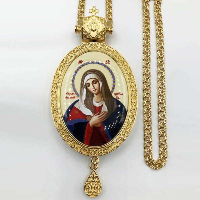Панагия латунная в позолоте с принтом и цепью арт.2.7.0201лпв магазине Благолепие Богослужения