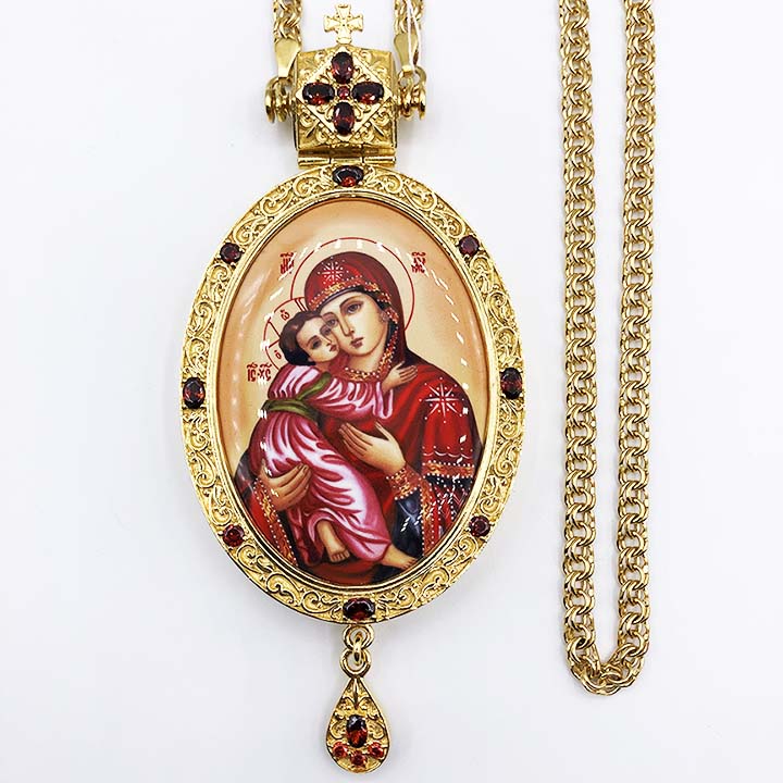 Панагия латунная в позолоте с принтом и цепью арт.2.7.0201лпв магазине Благолепие Богослужения