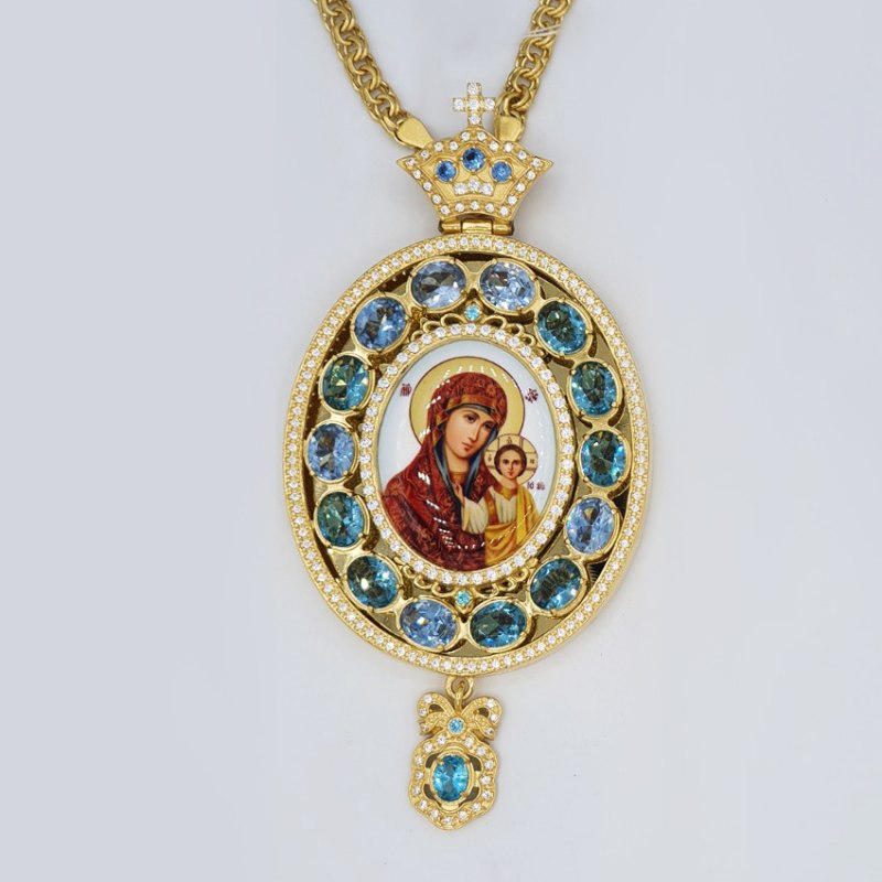 Панагия латунная в позолоте с принтом и цепью арт.2.7.0201лп