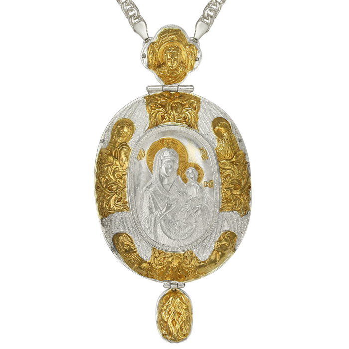 - Панагия латунная с литьевым образом, фрагментальной позолотой и с цепью 2.7.0201л