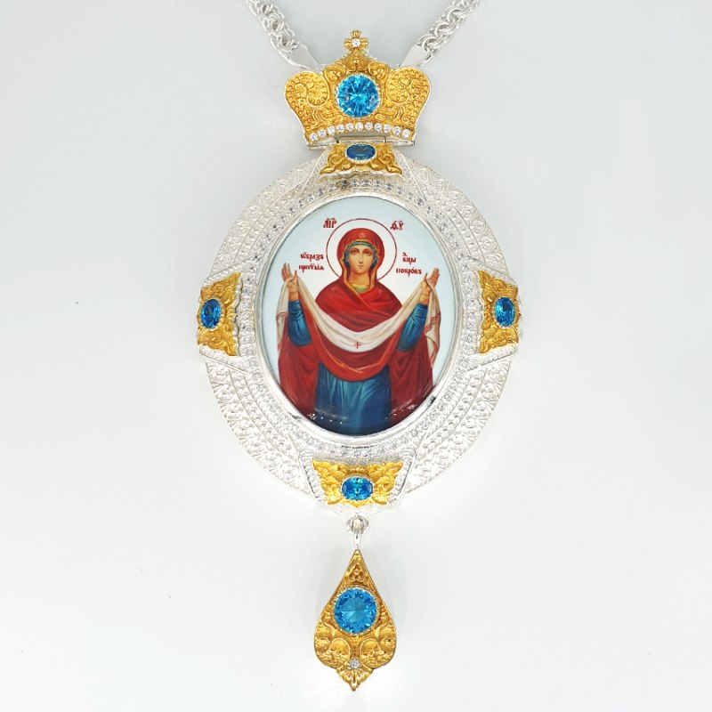 - Панагия латунная с фрагментарной позолотой, принтом и цепью арт.2.7.0201л