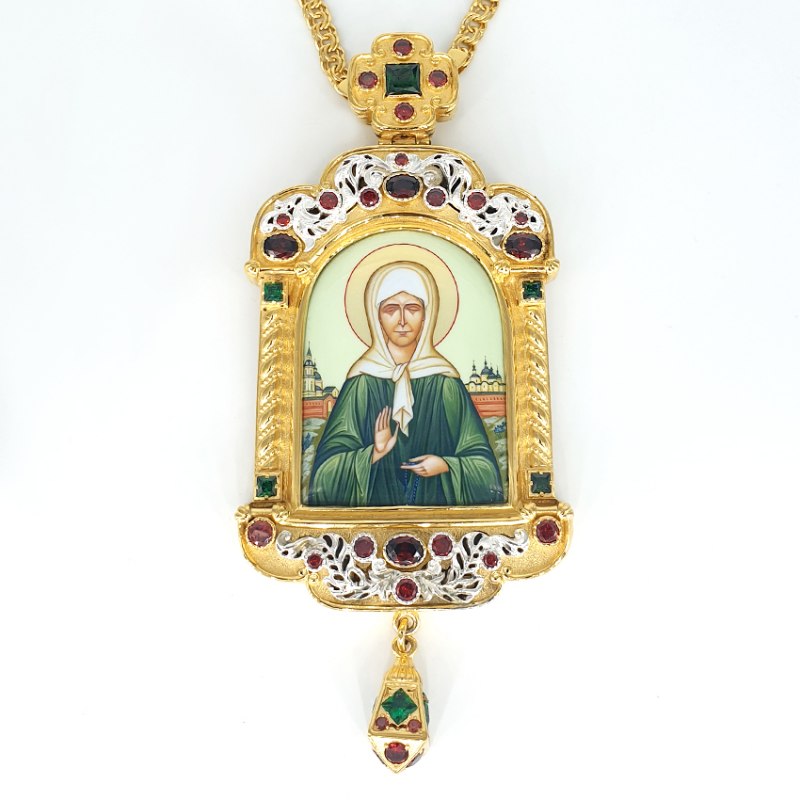 Панагия латунная в позолоте с принтом и цепью арт.2.7.0201лпв магазине Благолепие Богослужения