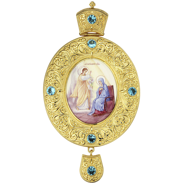 - Панагия латунная в позолоте с финифтью и вставками