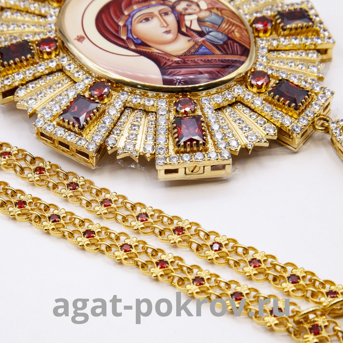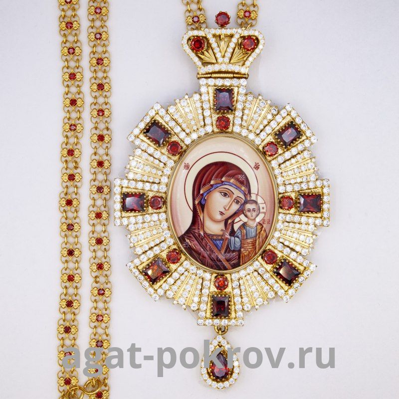 - Панагия Казанская латунная с красным камнем