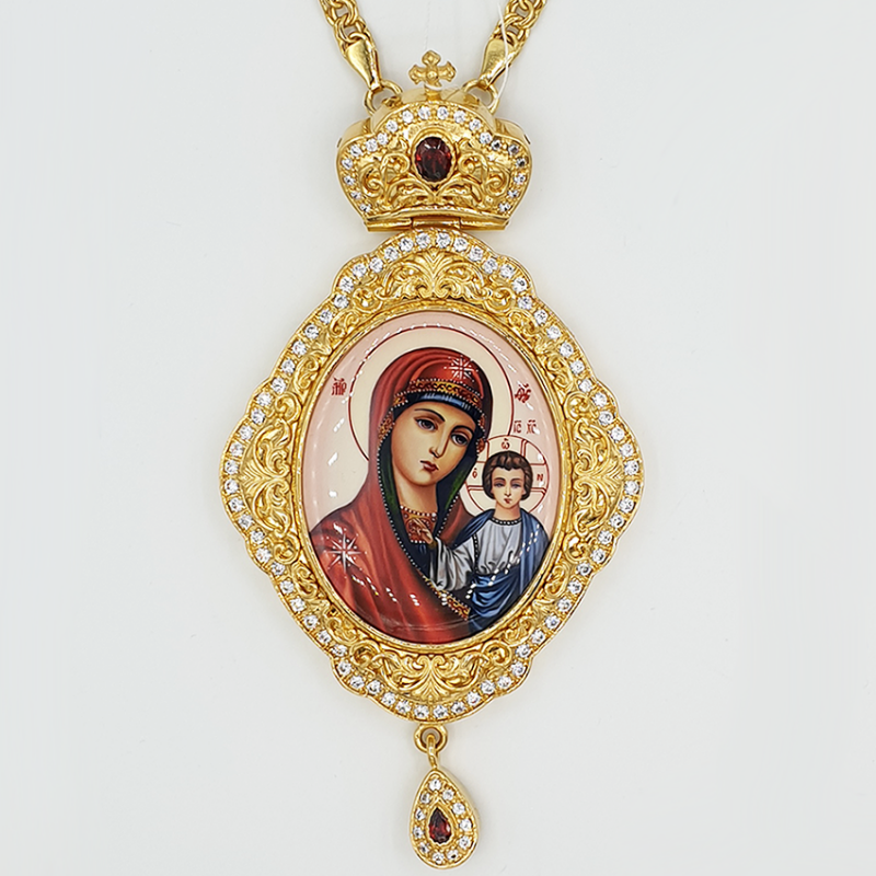 - Панагия латунная в позолоте с деколем и цепью арт.2.7.0201лп