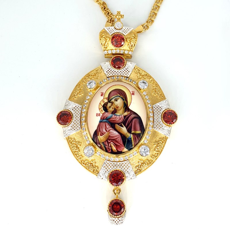 Панагия латунная в позолоте с принтом и цепью арт.2.7.0201лпв магазине Благолепие Богослужения
