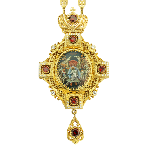 - Панагия в позолоте. Икона Песчанская Божией Матери
