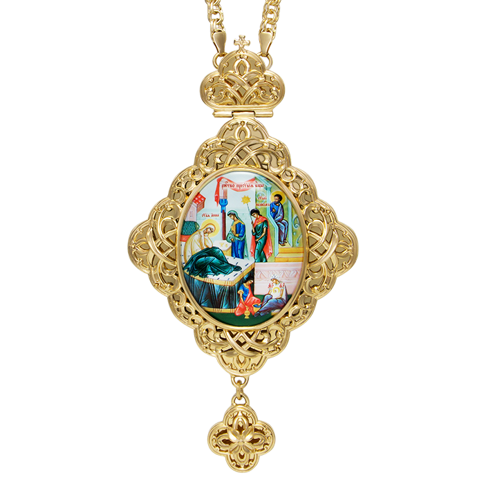 Панагия латунная в позолоте со вставками и цепьюв магазине Благолепие Богослужения
