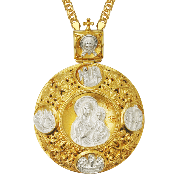 - Панагия латунная с литьевым образом, фрагментальной позолотой и с цепью 2.7.0201лп