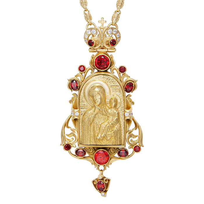 - Панагия латунная в позолоте с литьевым образом, вставками и с цепью 2.7.0273лп