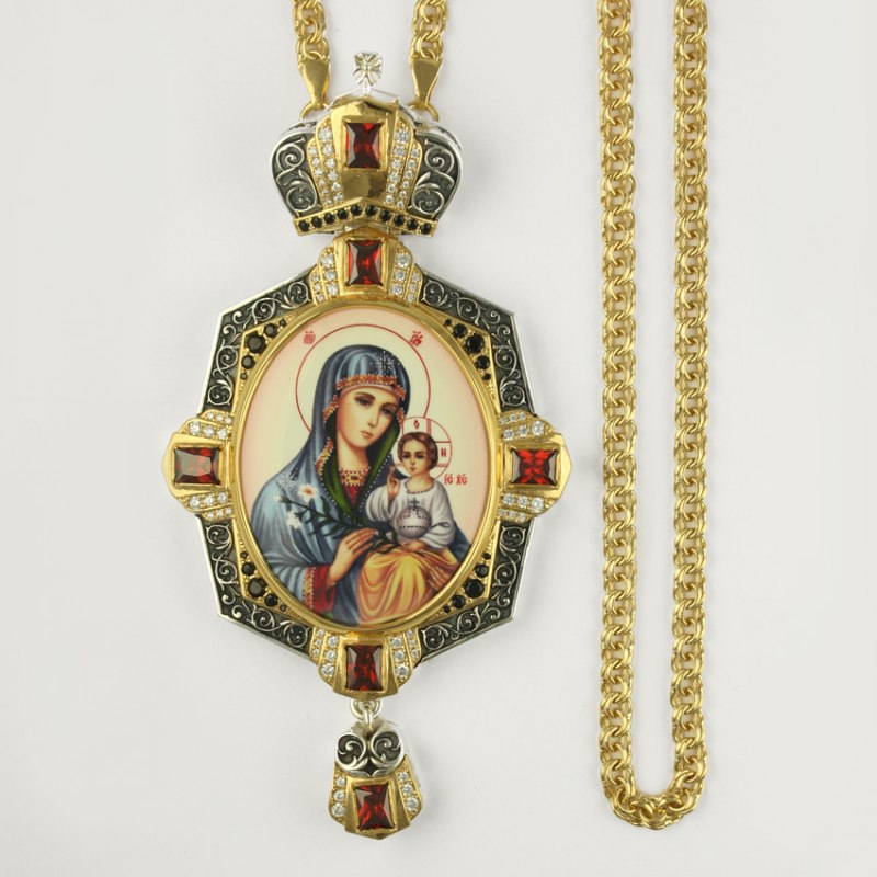 - Панагия латунная с фраг. позолотой, деколем и цепью арт.2.7.0201лп