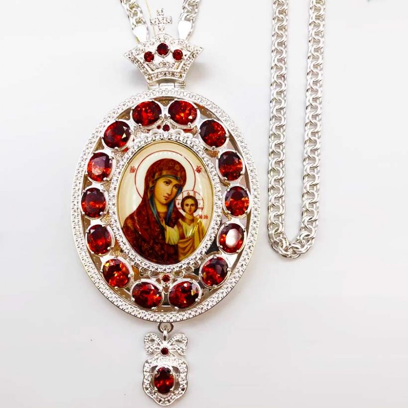 Панагия латунная с принтом и цепью арт.2.7.0201л