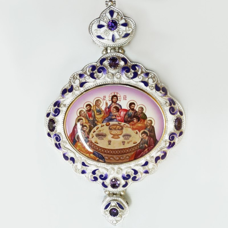 - Панагия латунная с эмалью, деколем и с цепью арт.2.7.0201л