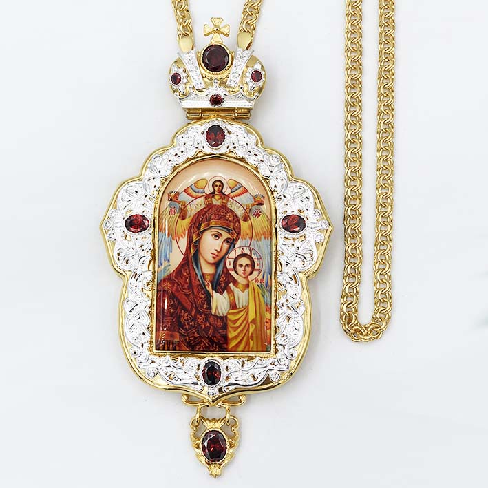 - Панагия латунная в позолоте с принтом и цепью арт.2.7.0201лп