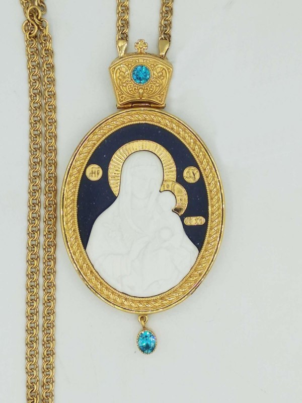 - Панагия латунная в позолоте с акриловым образом и цепью арт.2.7.0201лп