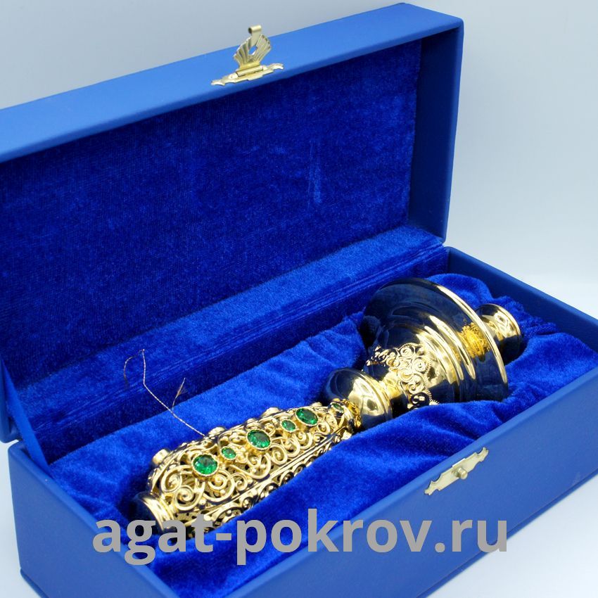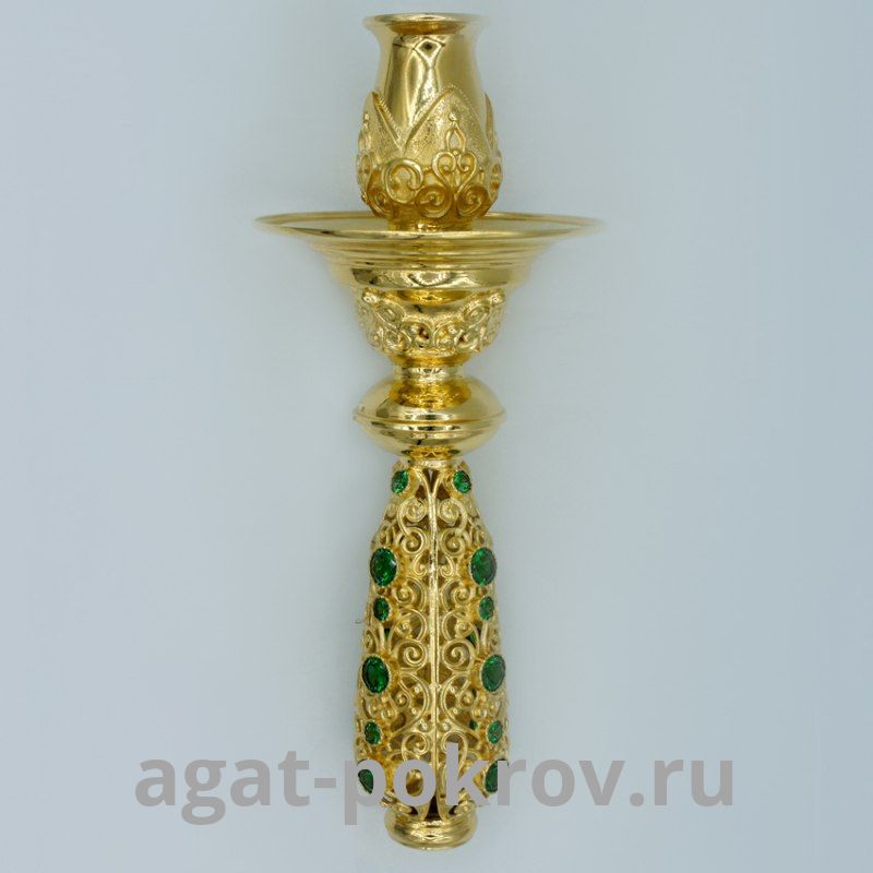 - Подсвечник латунный в позолоте со вставками ручной 2.7.0742лп
