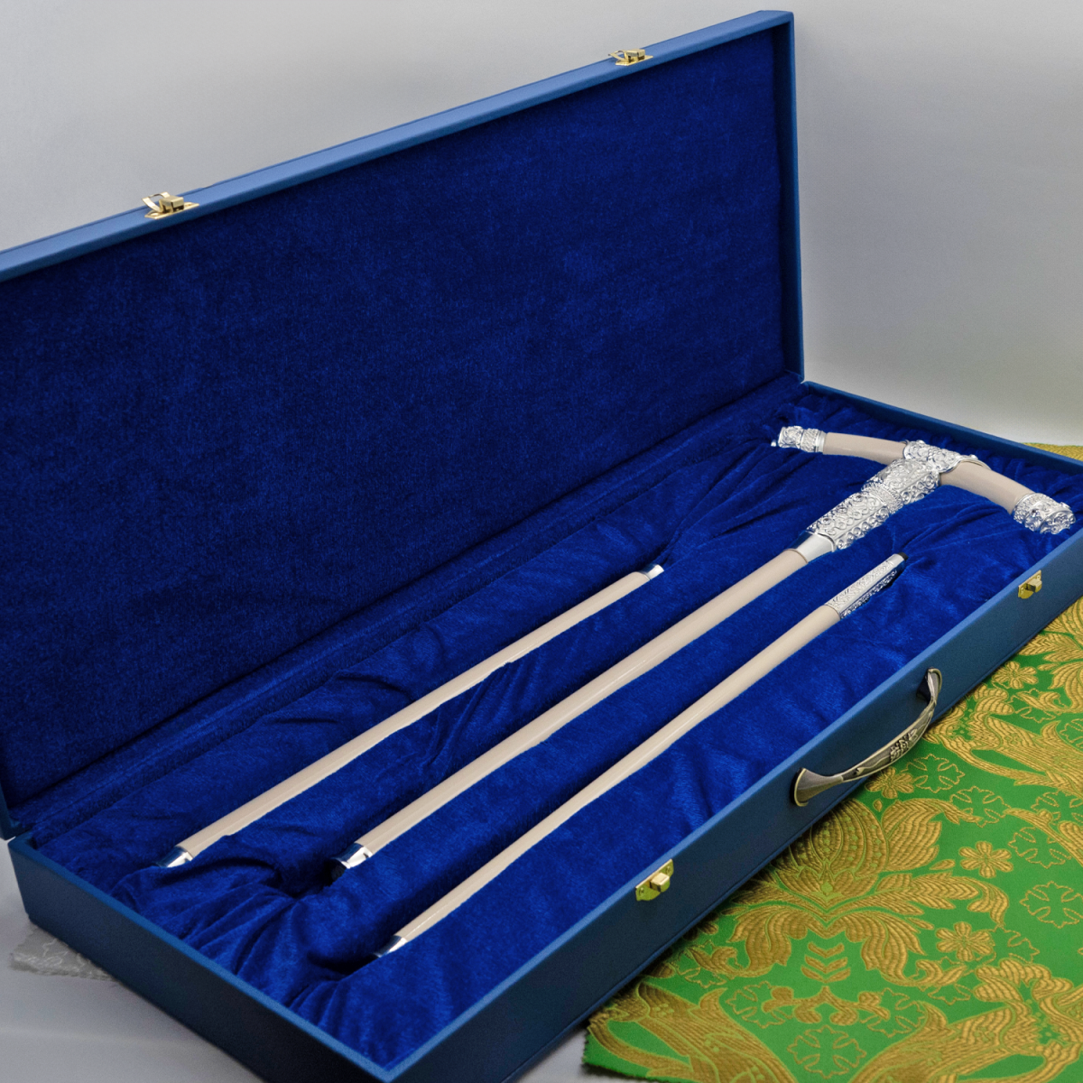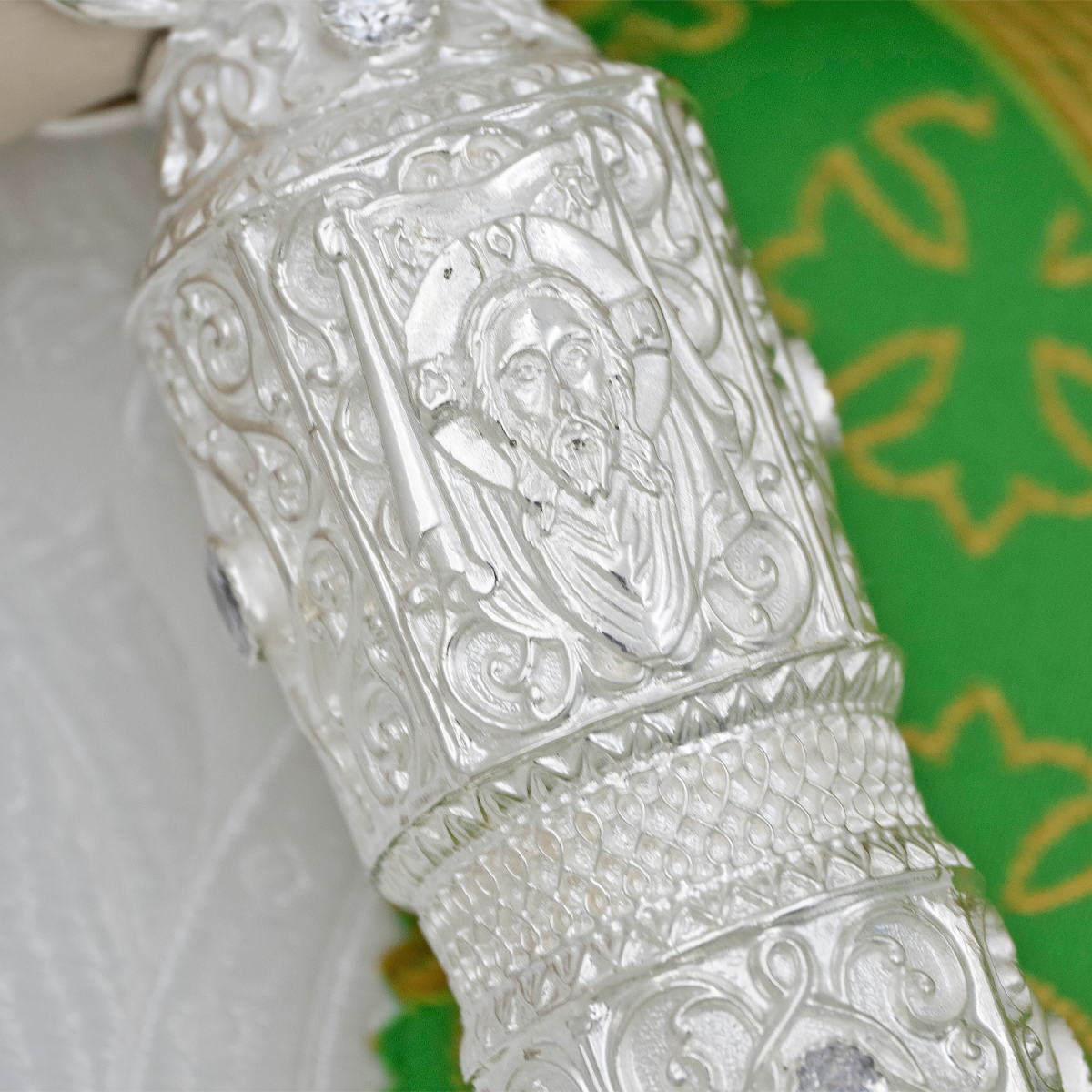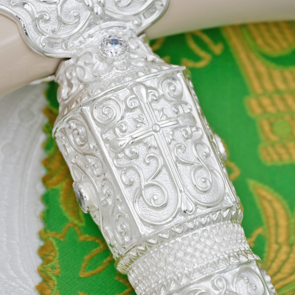 - Посох латунный с белыми камнями в серебрении 2.7.0519л