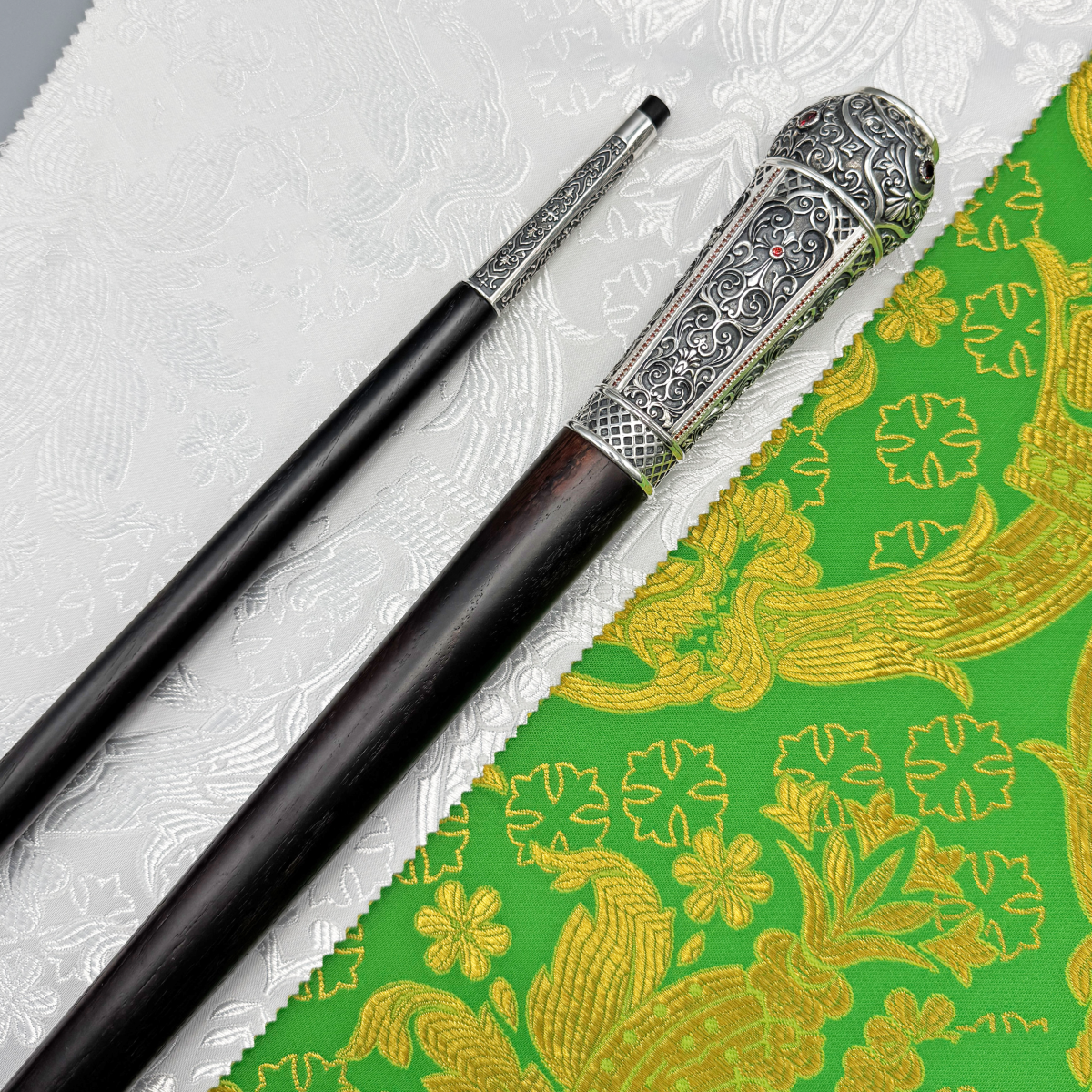 - Посох латунный с красными камнями в серебрении 2.7.1559лр