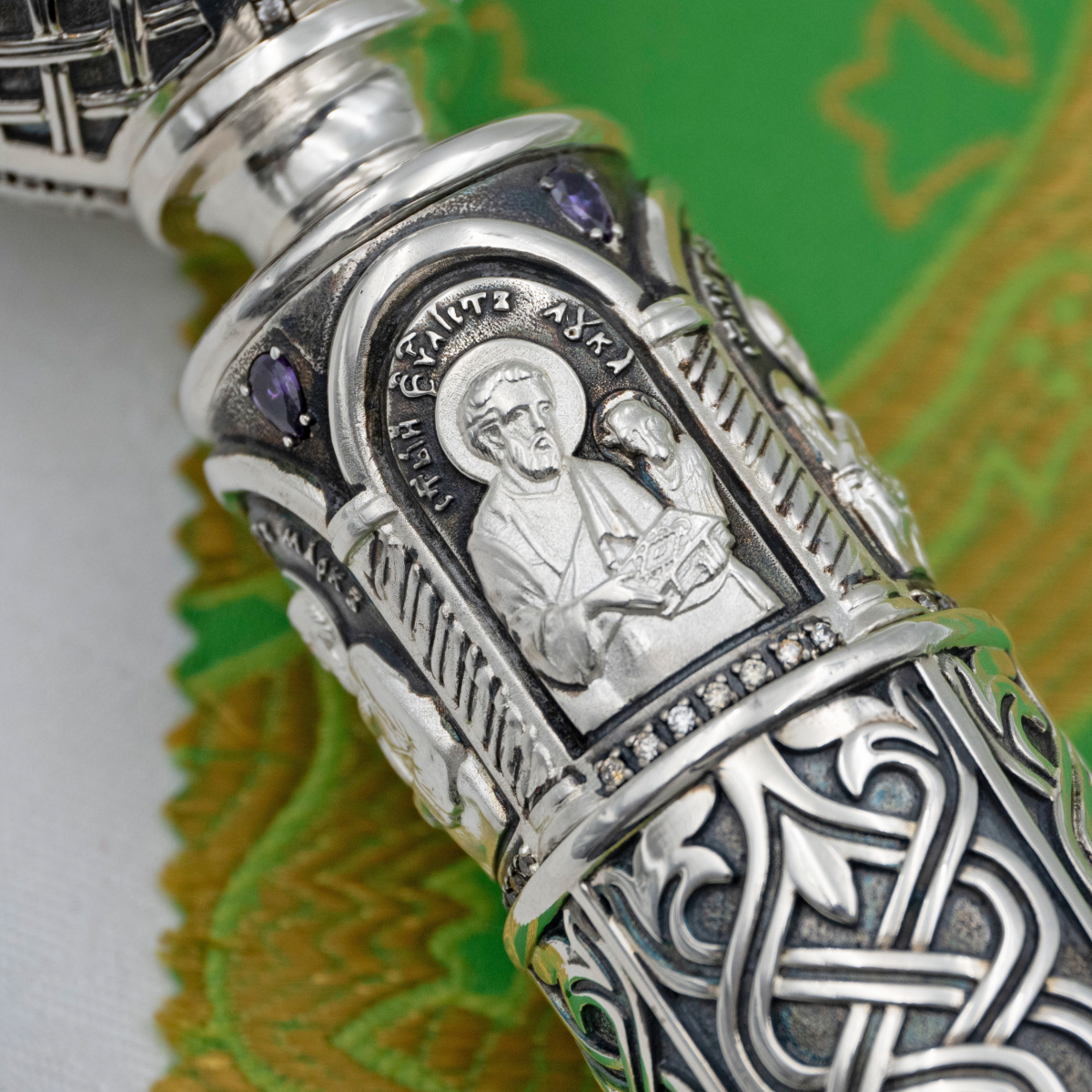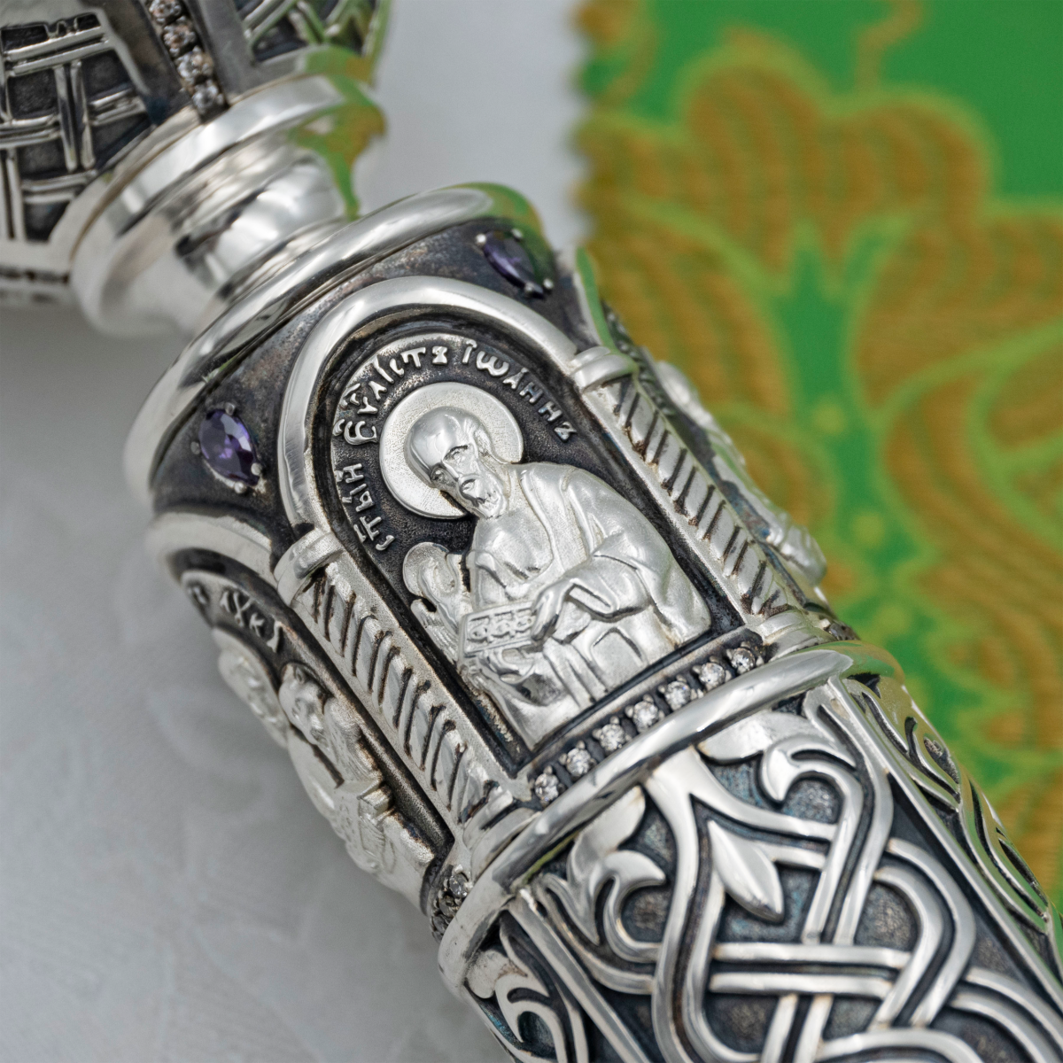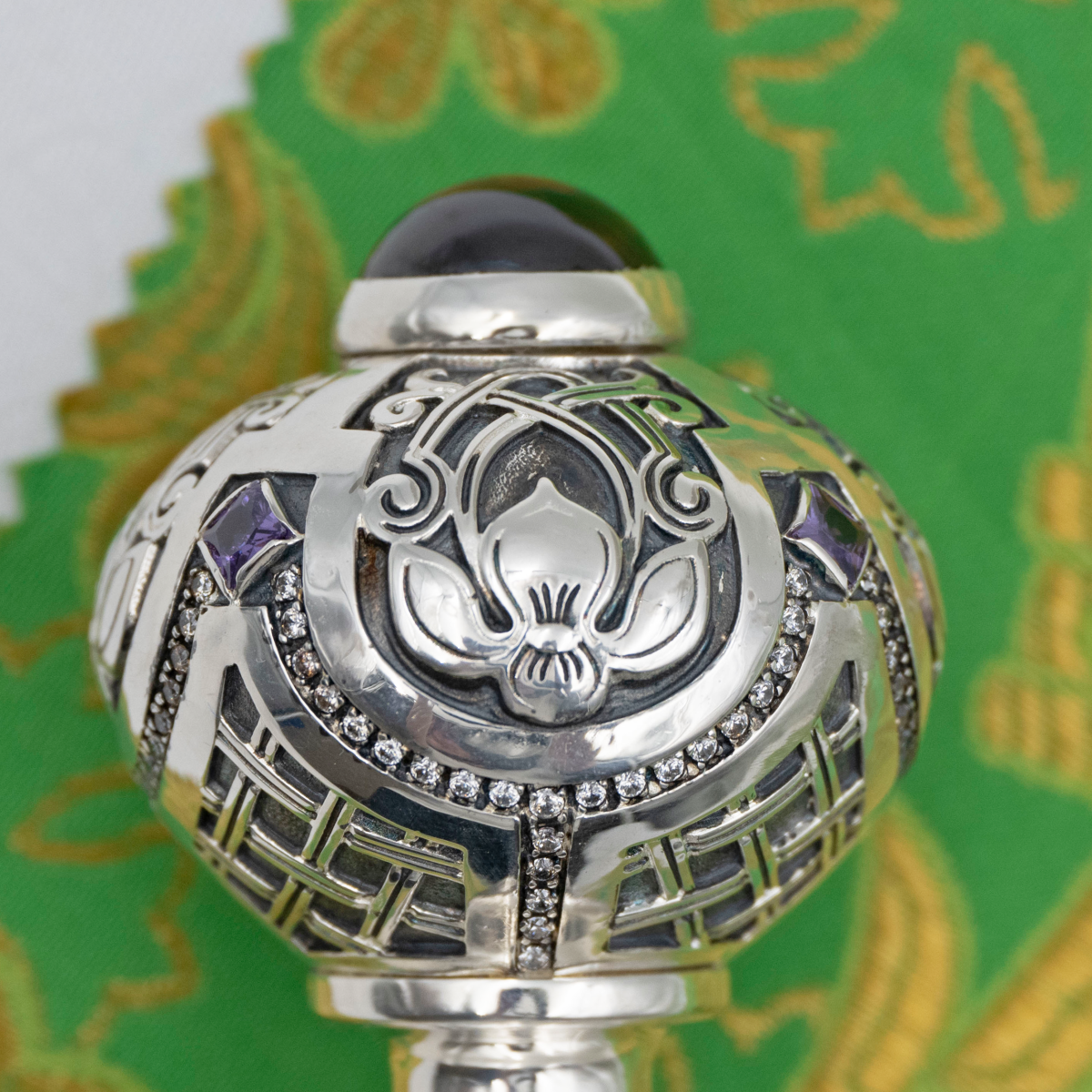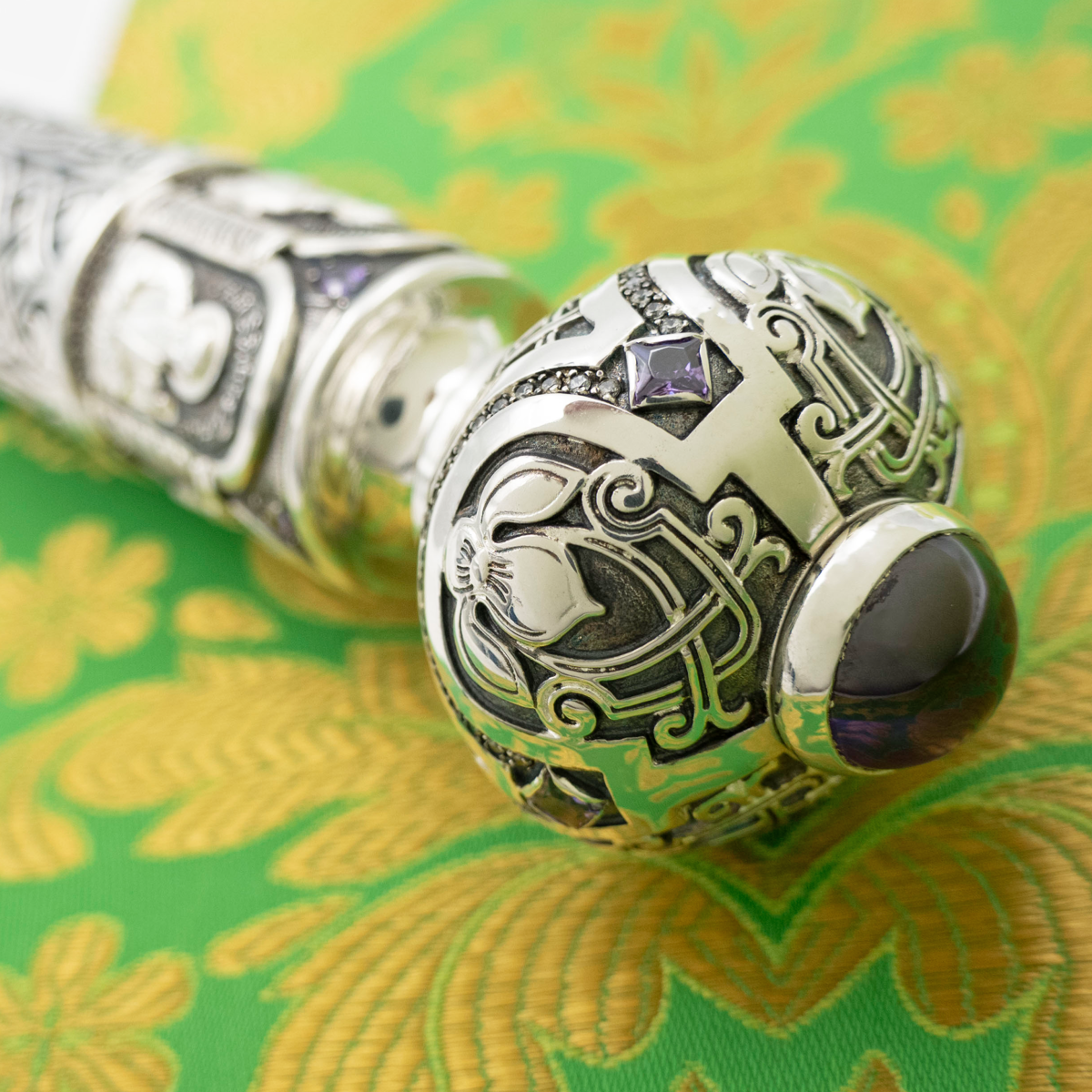 - Посох латунный с фиолетовыми камнями в серебрении 2.7.2016лр