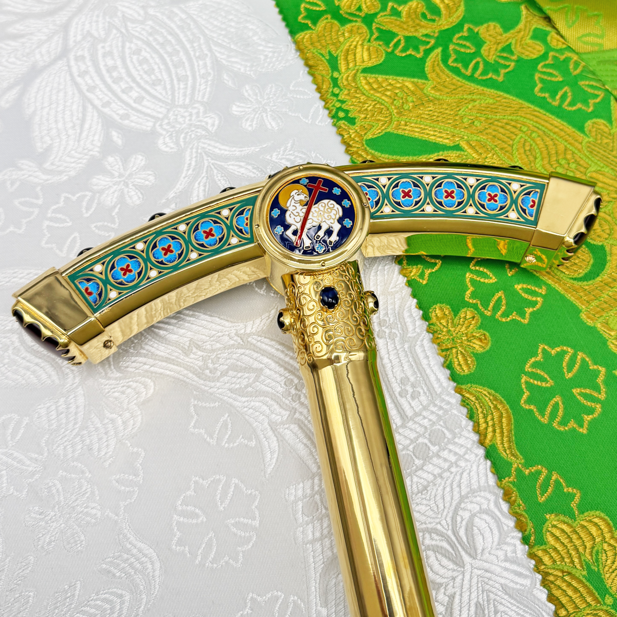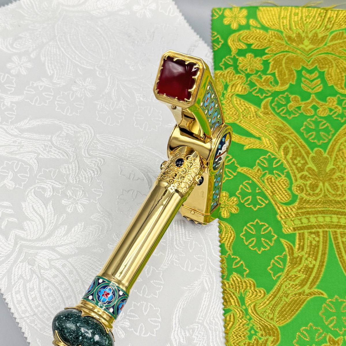 - Посох латунный в позолоте с натуральными камнями 2.7.2182лнпчэ