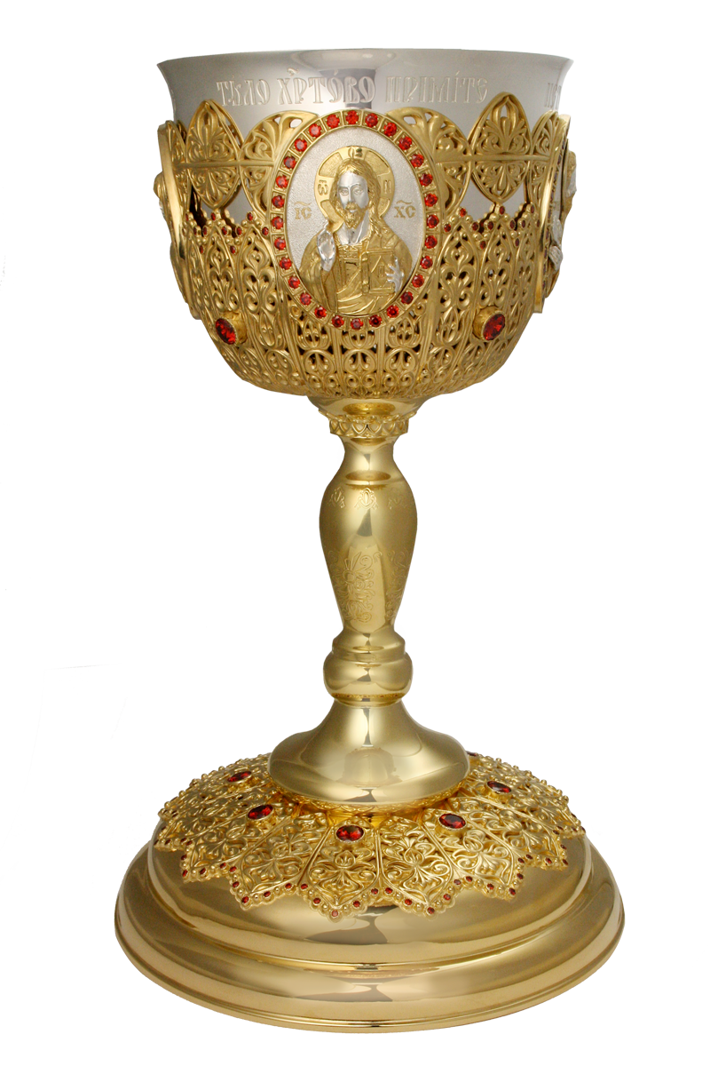 - Потир комбинированный 1,0 л. в позолоте с литьевыми образами и со вставками 2.7.0894клп