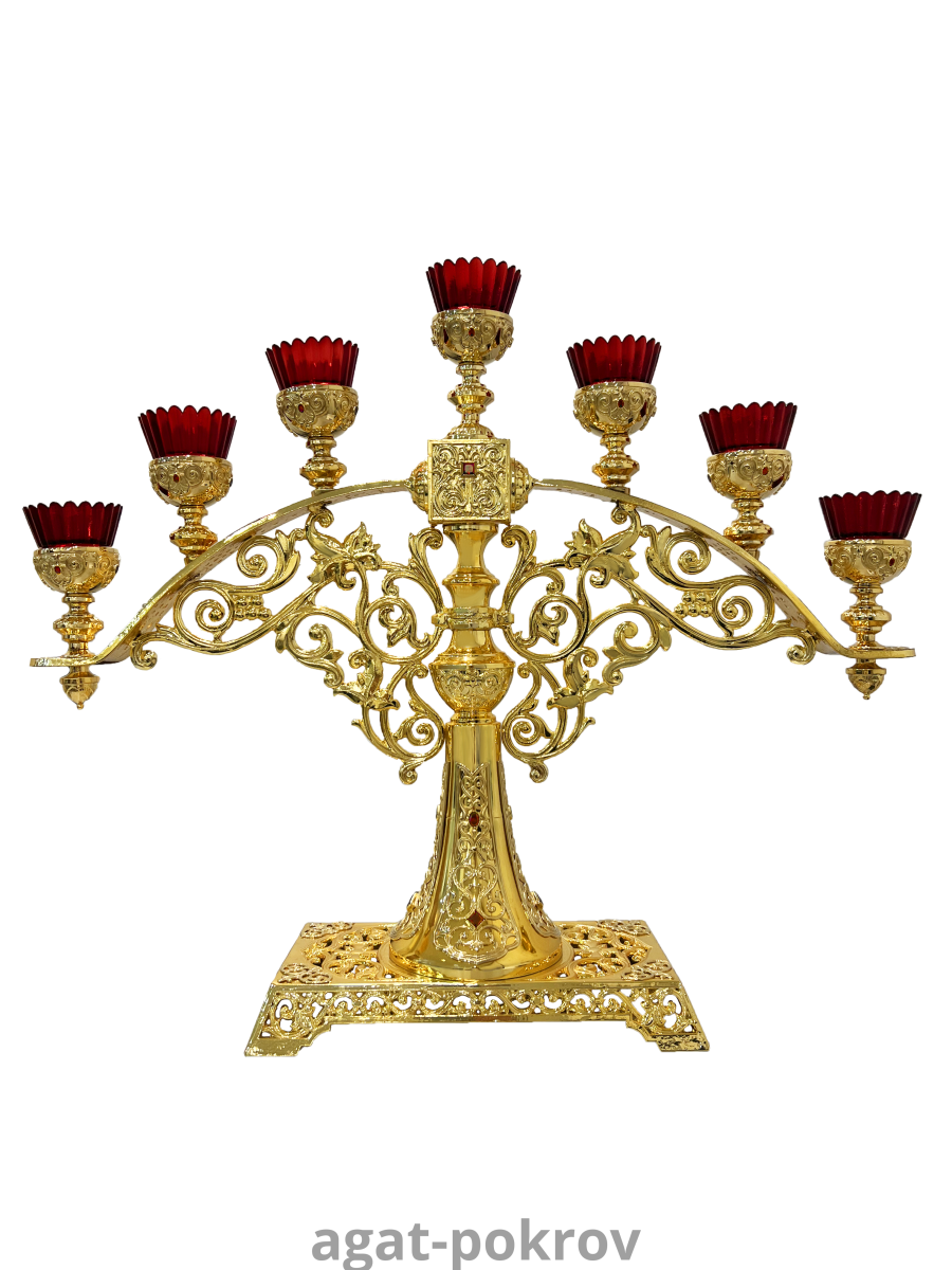 Семисвечник изготовлен из высококачественного ювелирного сплава. Декорирован вставками из фианитов.