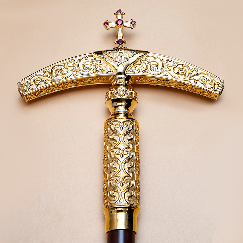 - Жезл латунный с красными камнями в позолоте 2.7.1582лп