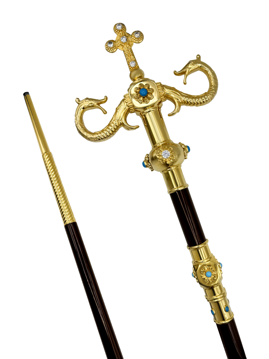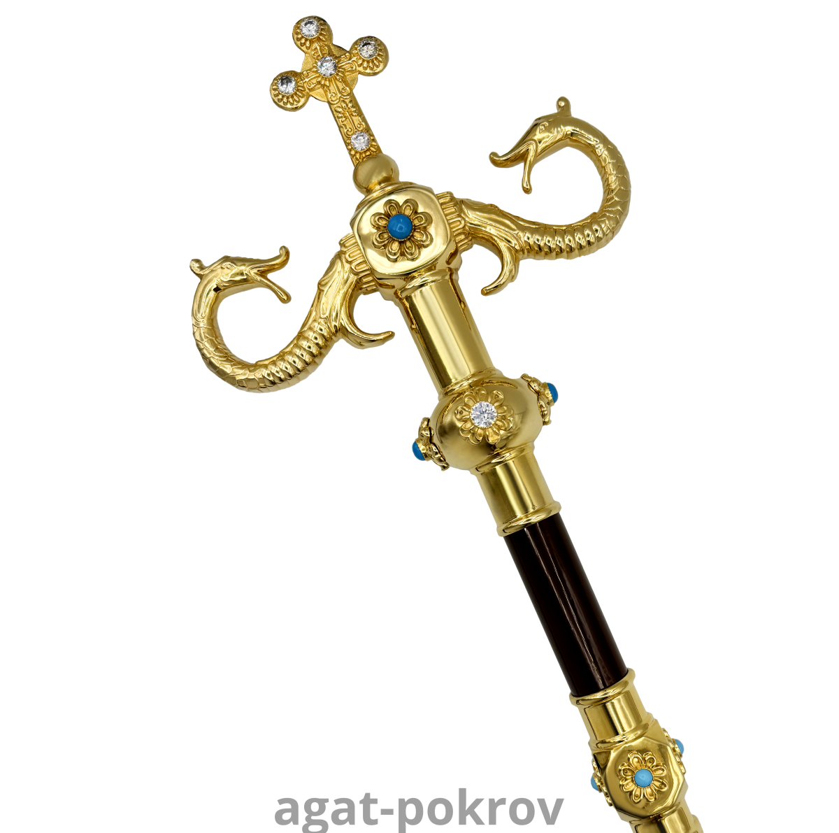 - Жезл латунный с голубыми камнями в позолоте 2.7.2165лп