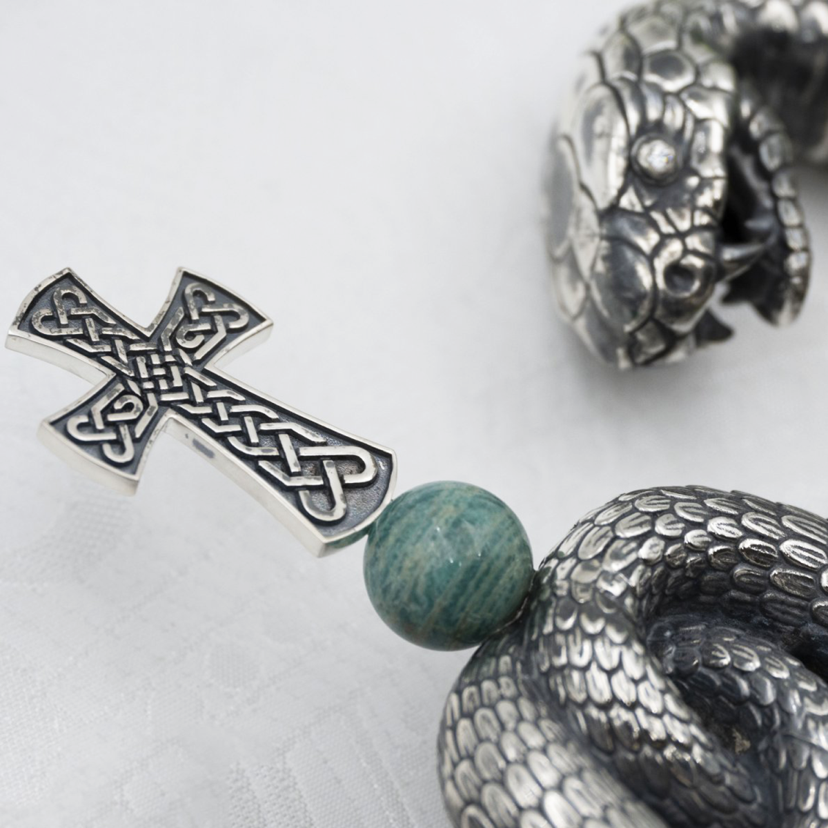- Жезл латунный в серебрении с натуральными камнями 2.7.2443лнрч