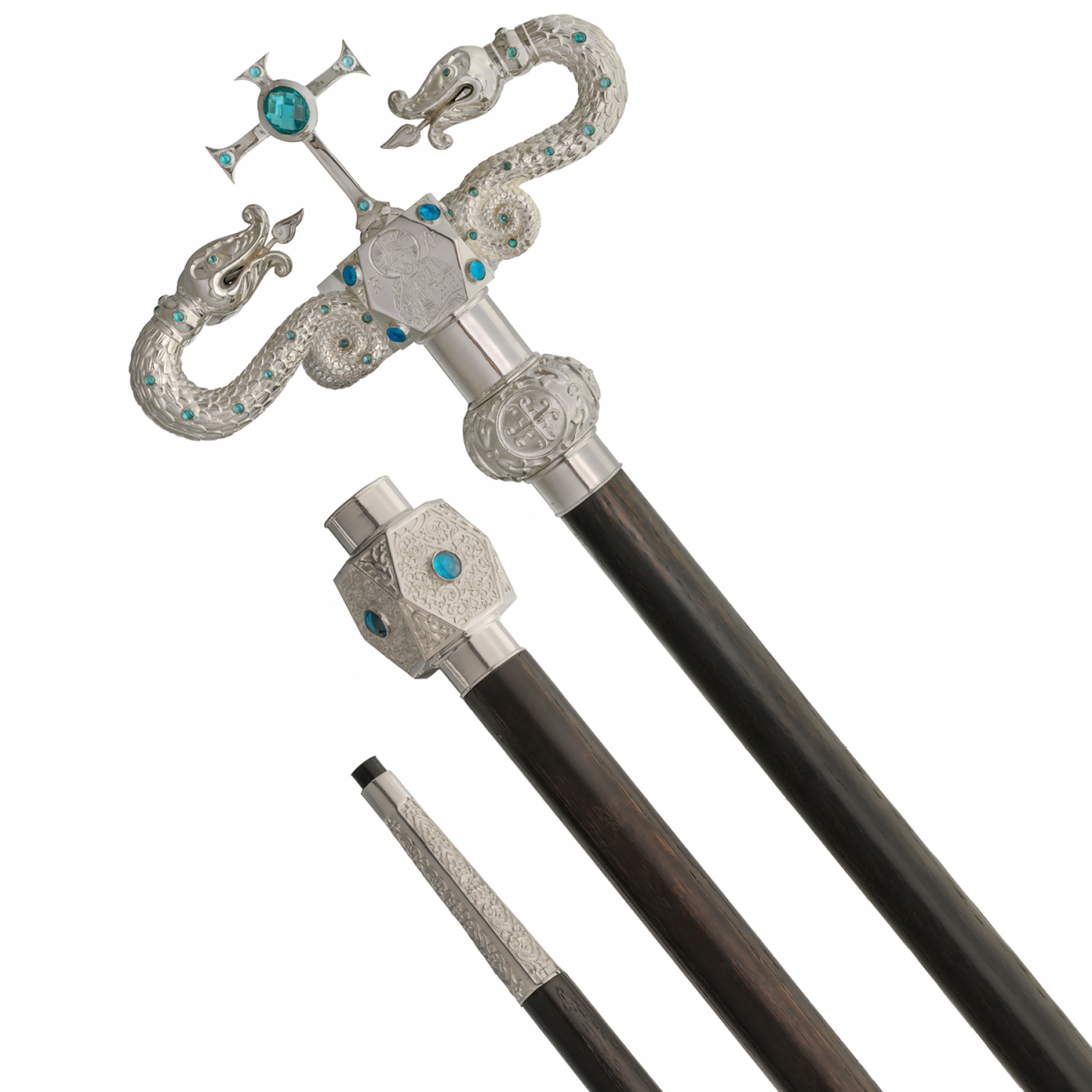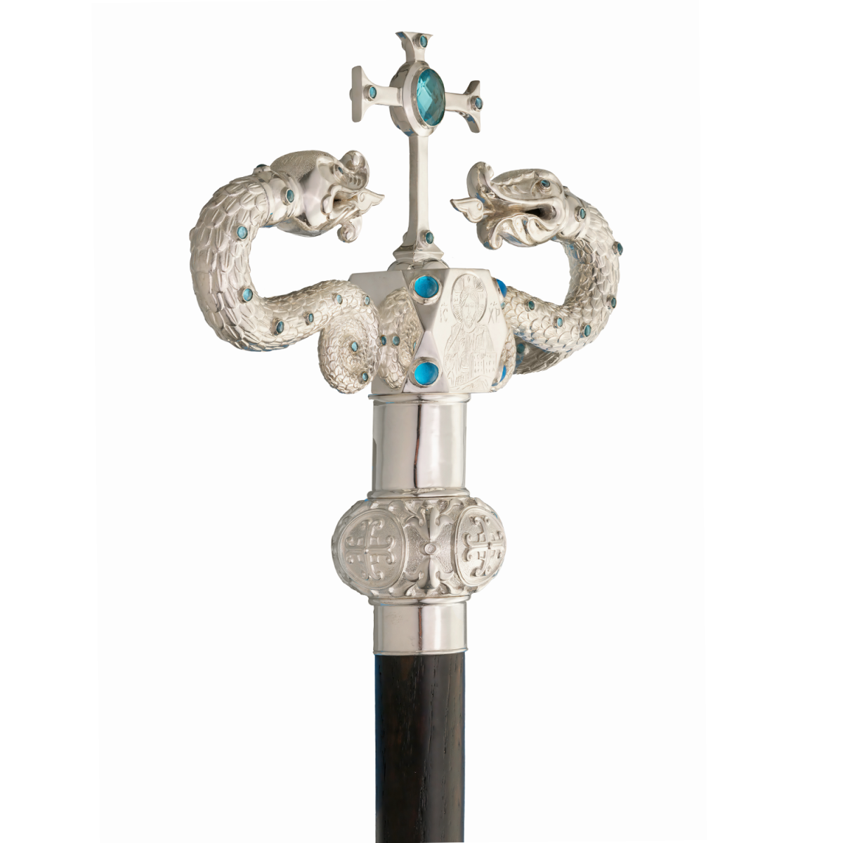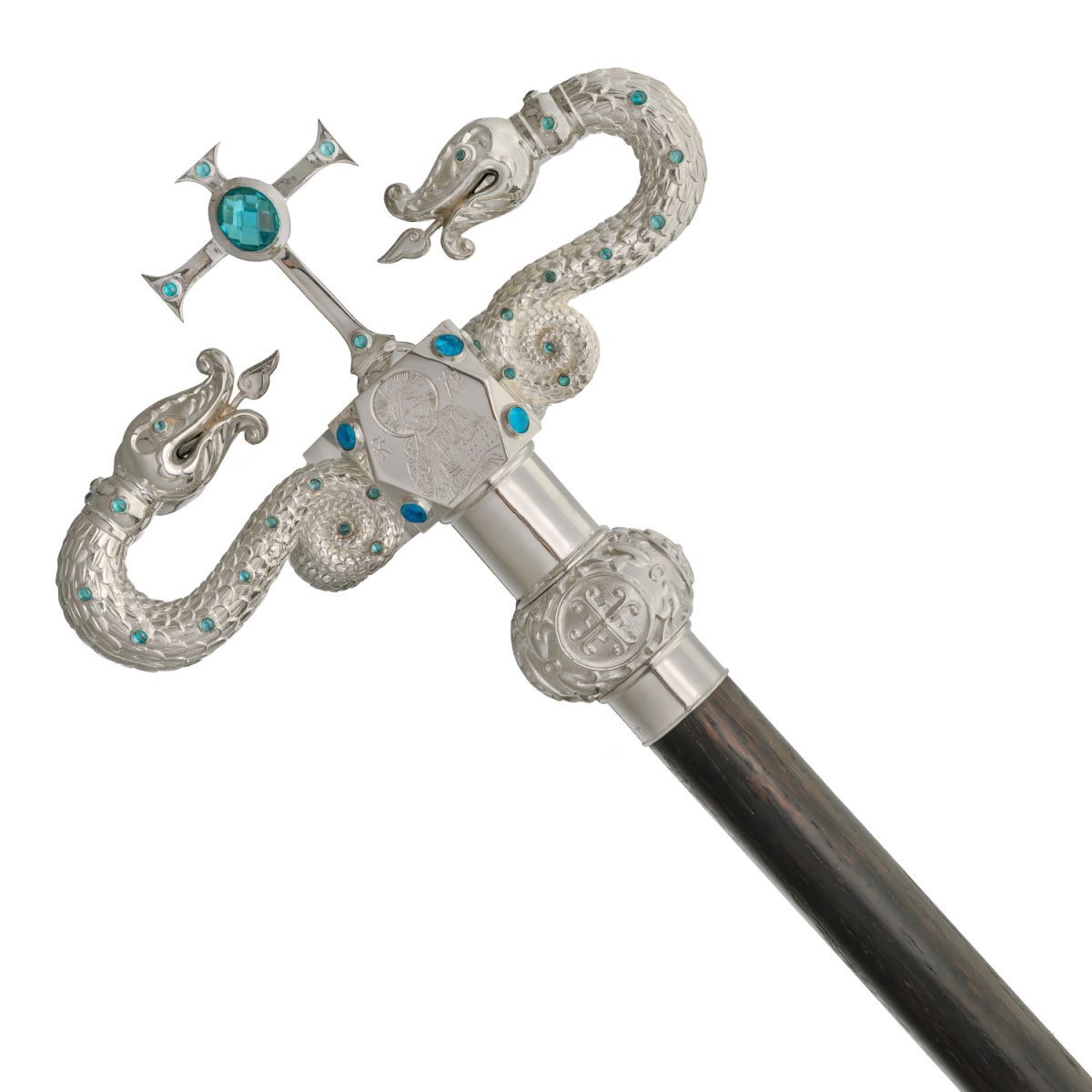 - Жезл латунный с голубыми камнями в серебрении 2.7.2478л