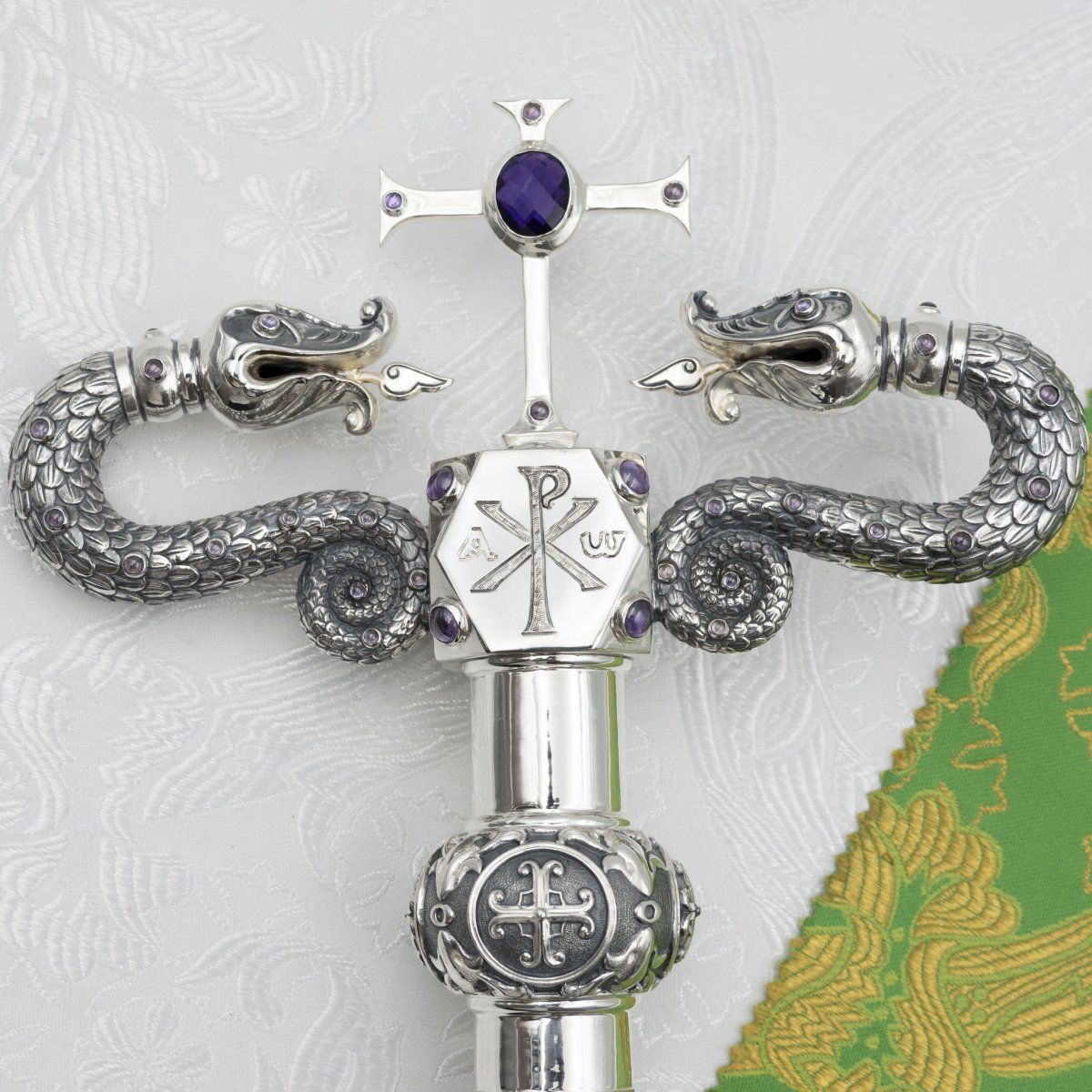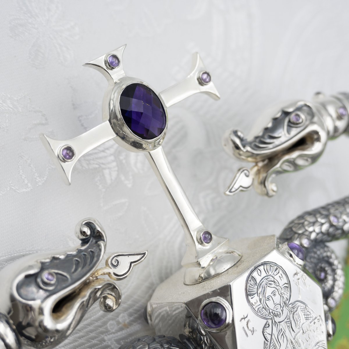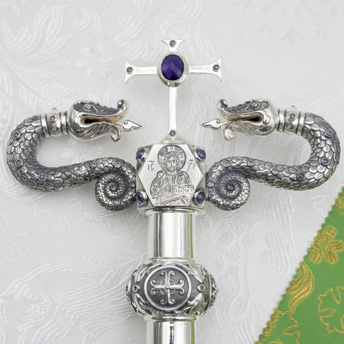 - Жезл латунный с натуральными камнями в серебрении 2.7.2478лнр