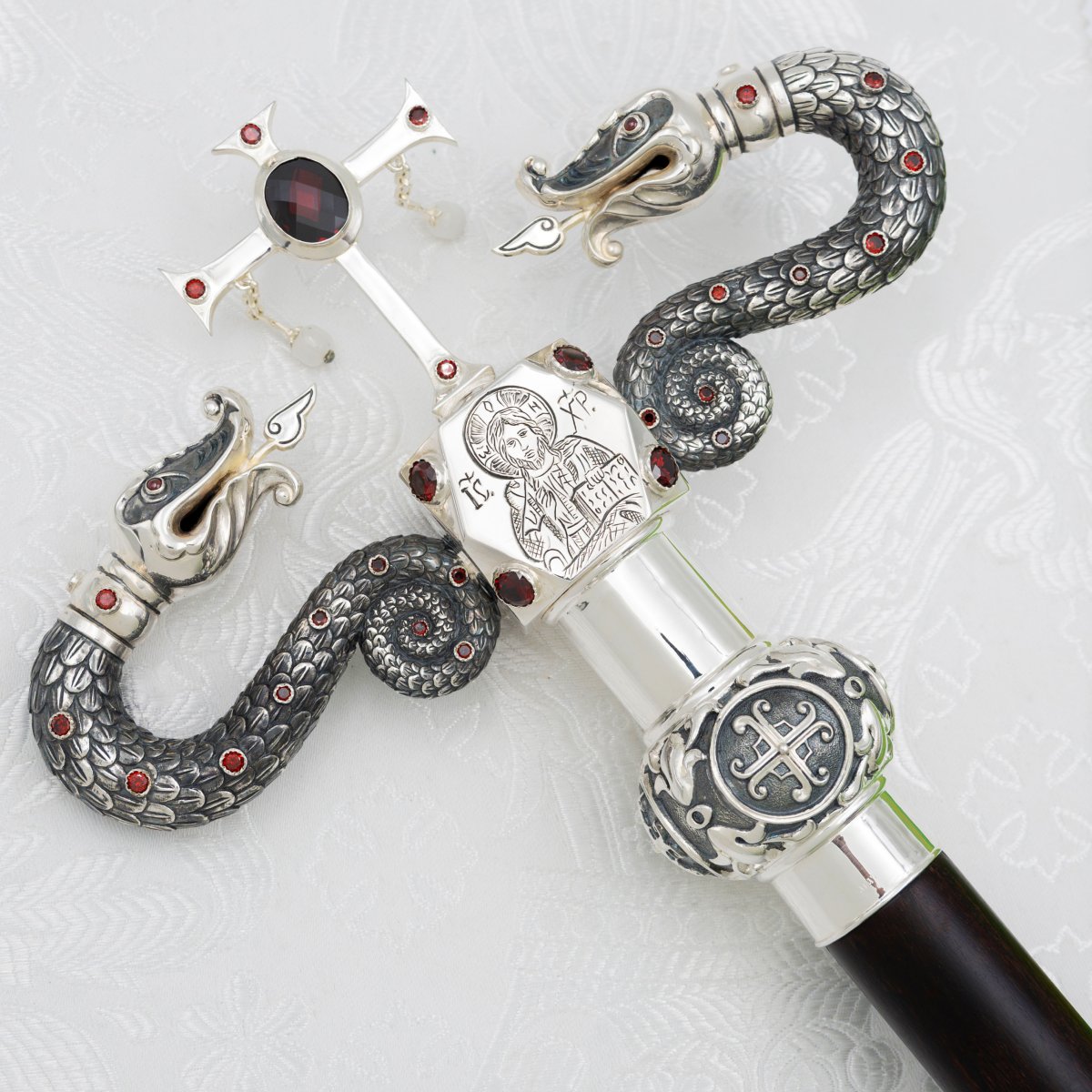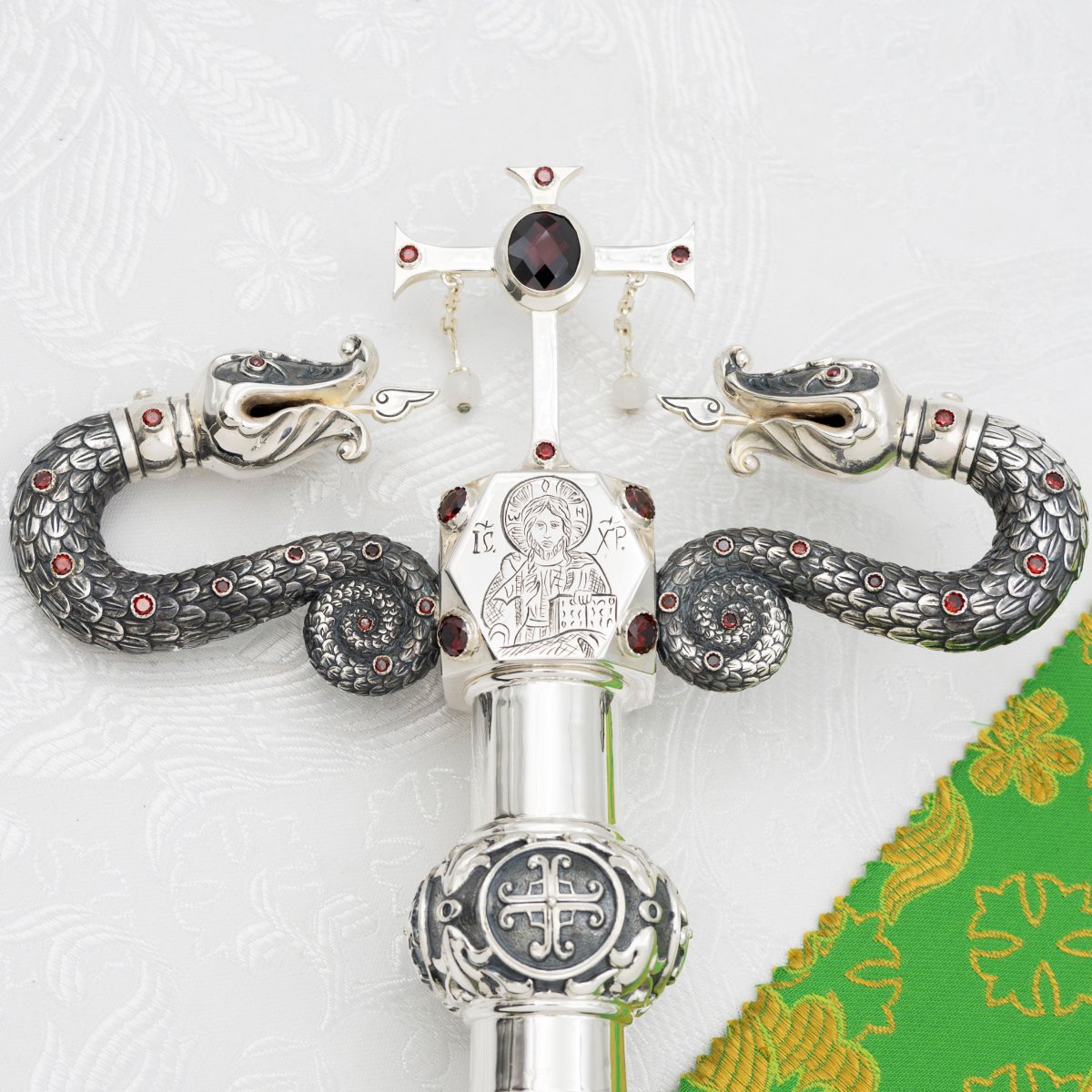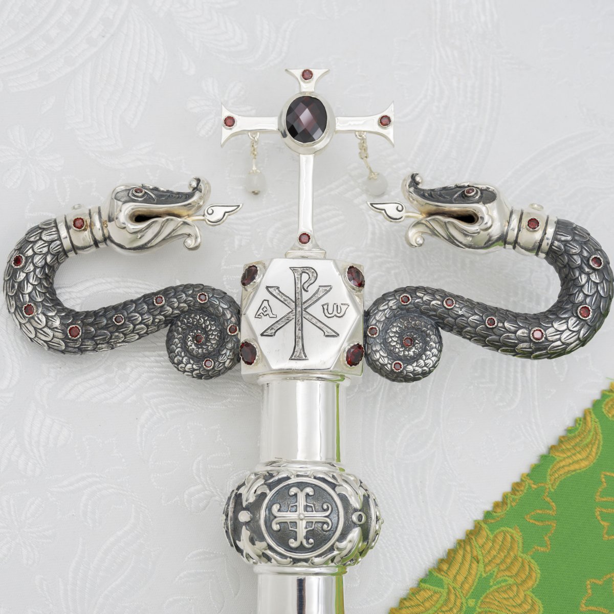 - Жезл латунный с натуральными камнями в серебрении 2.7.2478лнр