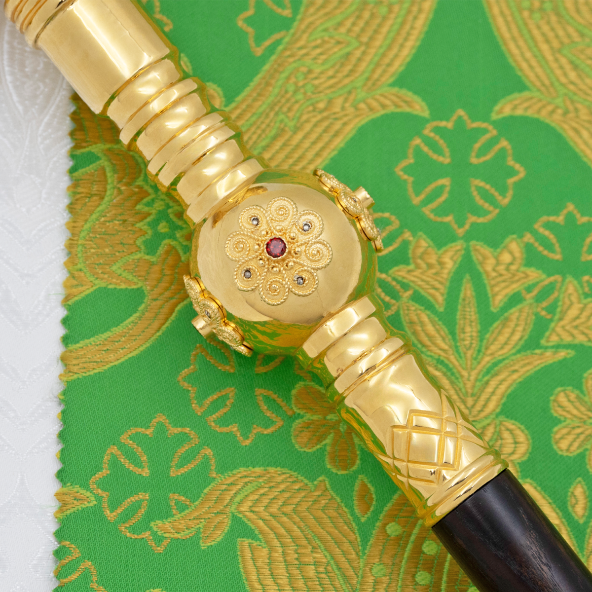 - Жезл латунный с красными камнями в позолоте 2.7.2889лп